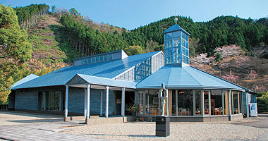 四季折々の美しい景観が楽しめる川口ダム湖畔に位置し、木のまちの特長を活かした木造の美術館。 |